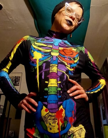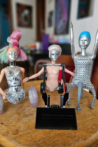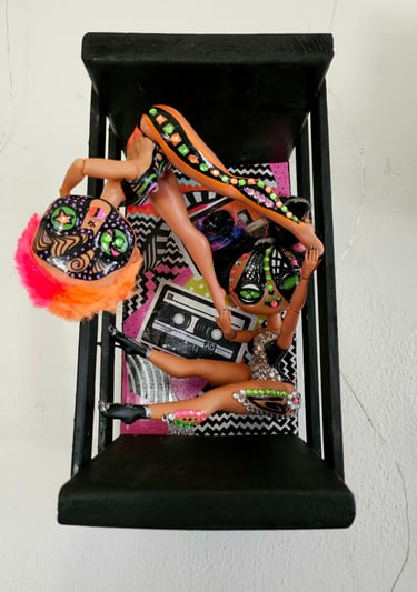 Danielle Rae (she/they), the maddest of mad dolls, doesn't just make art-they live it. Like a good millenial, she earned a mostly useless Bachelor's Degree and bounces around in the service industry for paychecks. They aim to devote minimal brain power to the grind of capitalism, and more of it to making art and living life. Crafting a style that is eclectic yet cohesive, Danielle loves exploring new media and having multiple projects to busy their buzzy brain. She has breathed imagination into over two dozen dolls since she began experimenting with them in 2022. Danielle also loves to make jewelry, draw, paint, linocut, collage, craft street art, sing, dance, and roller skate.